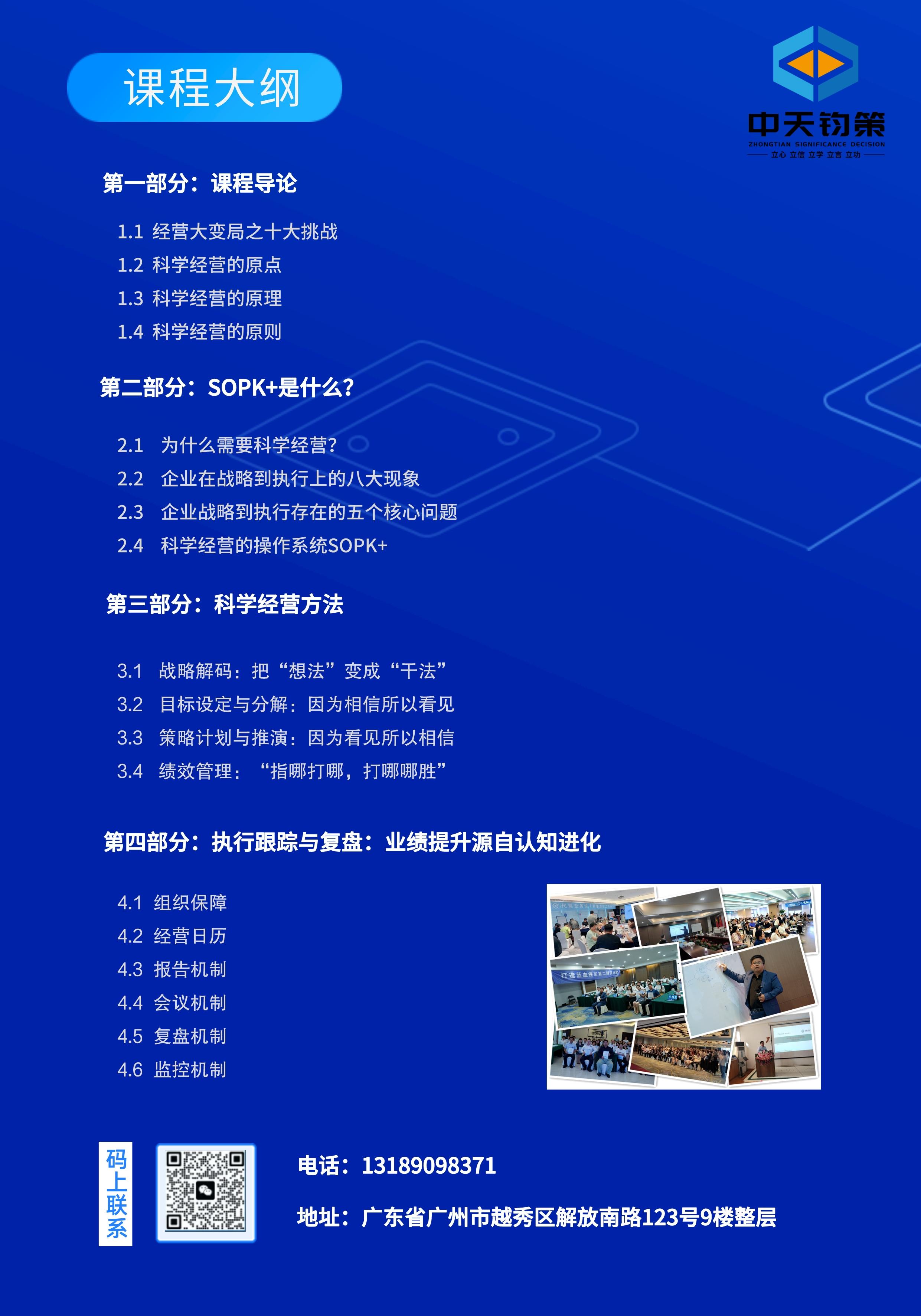 在大量的管理咨询和培训中,我们总结了这套有效的科学经营的方法论,在向各类企业提供咨询和培训的服务中,我们也深深体会到企业家为各种商业模型、商业概念、市场环境变化所困扰,不知道如何去抓住商业变化中不变的经营管理的本质规律和方法。于是,我们集中公司的优秀顾问、老师总结了这套科学经营和管理的方法和实战体系,让科学经营的思想和智慧也能适配各个规模、中小企业的需要,并将此奉献给各位企业家、企业管理者们。