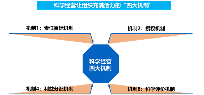 第四个机制叫科学评价机制,即岗位价值评价、任职资格评价、绩效管理。四个机制往往企业在利益分配机制存在重大问题,为了解决好科学经营的问题,首先解决利益机制的问题,因为解决这个问题是能够牵引其他三个机制运转的关键。