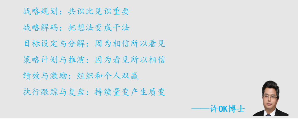 这就叫“从想法到干法,隔了两个太平洋”。所以我们打仗前一定要做作战推演,要提炼打法,要打有把握之战。任何一个行动计划开始之前,都最好能先做推演训练。从大的方向来说,推演包括“拉通对齐、路径规划、红蓝对垒、资源配置”四个步骤。具体的方法,可以多学习下华为的BLM模型或者更适合本土企业的SOPK+科学经营模型。比如要尽量多方面进行红蓝军的推演对垒,听到不同的声音,争取达成“从想法对齐到干法对齐”,做好最大化的资源配置,这样,打胜仗的把握就大了。