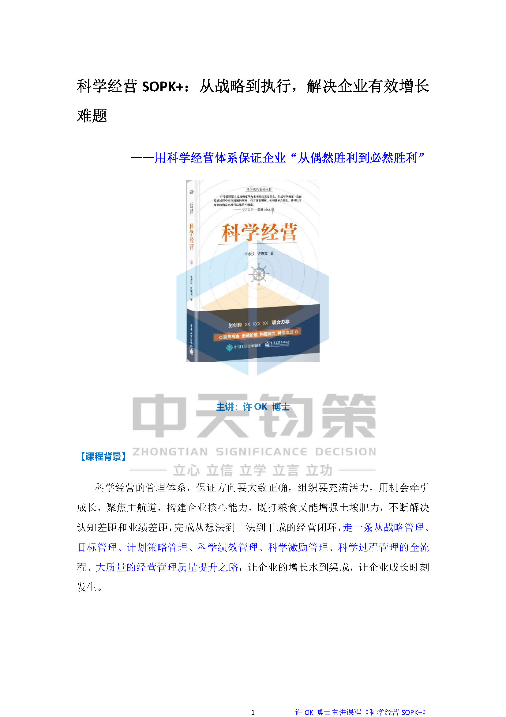 《科学经营SOPK+》保证企业“从偶然胜利到必然胜利”!