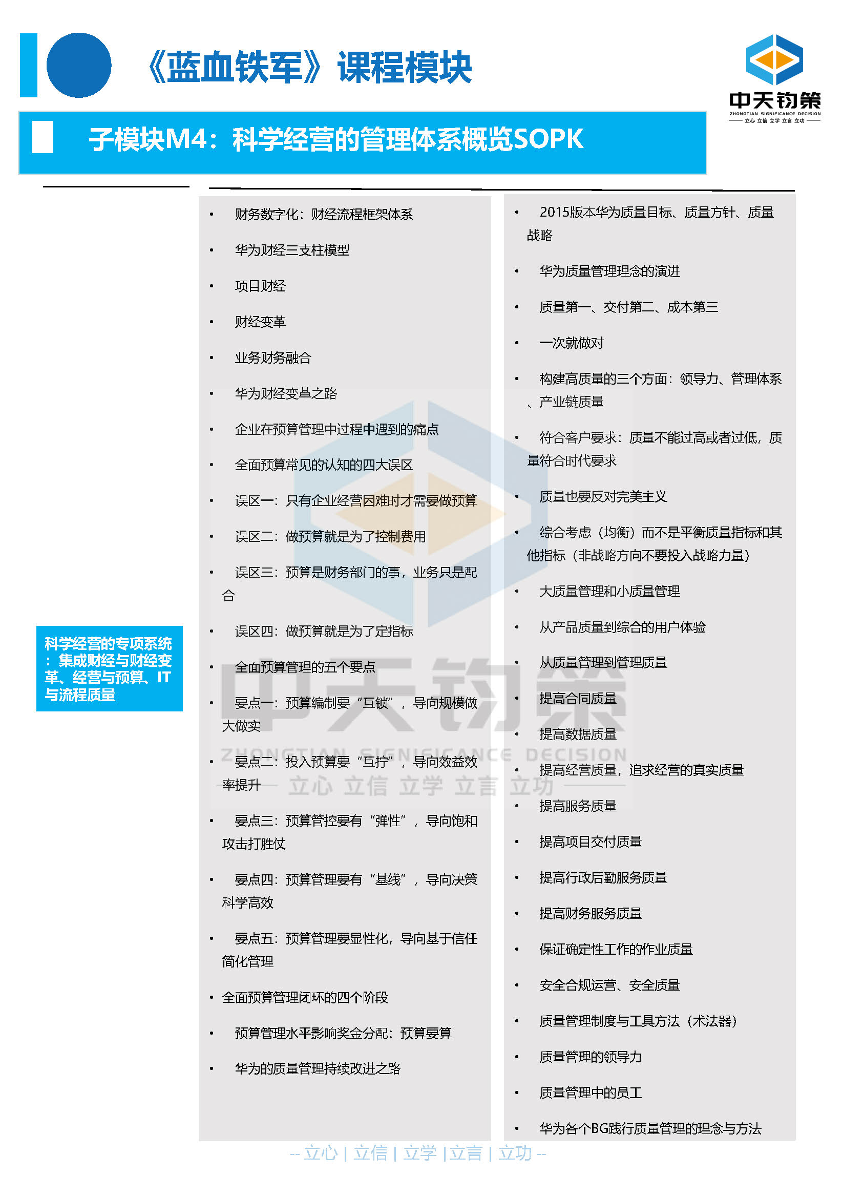 “五化”打造“蓝血铁军”之21-《蓝血铁军》课程模块子模块M4之科学经营的专项系统