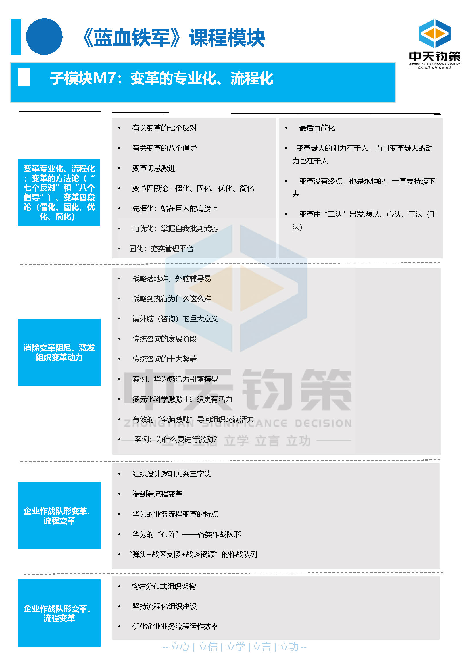 “五化”打造“蓝血铁军”之24-《蓝血铁军》课程模块子模块M7:变革的专业化、流程化