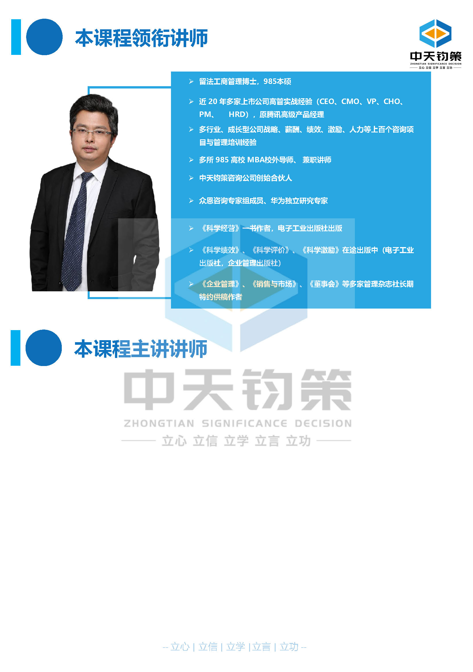 <p><span style="text-wrap-mode: nowrap;">《华为兵法》——学习华为经营管理智慧,帮助企业打胜仗;</span></p><p><span style="text-wrap-mode: nowrap;"><br/></span></p><p><span style="text-wrap-mode: nowrap;">咨询、课程简介与课程大纲</span></p><p><span style="text-wrap-mode: nowrap;">——学习华为经营管理智慧,帮助企业打胜仗</span></p><p><span style="text-wrap-mode: nowrap;"><br/></span></p><p><span style="text-wrap-mode: nowrap;">咨询模块、课程模块说明</span></p><p><span style="text-wrap-mode: nowrap;">1. 本讲义分为十多个模块,可定制化组合;</span></p><p><span style="text-wrap-mode: nowrap;">2. 华为管理智慧说到底就是如何“打胜仗”让企业“赢”的战术、策略和方法。任何企业的最终目的是要创造价值,底线是让自身生存下来,在这方面,华为包括其创始人任正非有许多的经验教训可供其他企业参考。</span></p><p><span style="text-wrap-mode: nowrap;">3. 市面上解读华为管理经验的人、书、文章何其多也,华为在如今也可谓“显学”,然而极少有人真正长期深入研究华为,本模块主讲许OK博士是华为研究专家,在《企业管理》、《销售与市场》、《经济导刊》上发表数十篇有关华为经营管理的文章,并出版多本相关书籍;并基于对不同行业,不同类型的企业咨询实战,浓缩提炼了本课程。</span></p><p><span style="text-wrap-mode: nowrap;">4. 本课程从组织设计、薪酬激励、授权智慧、组织活力建设、人才培养、创新管理、干部管理等企业经营管理各个角度阐述华为经营管理智慧的本质。对于华为各种看似“唬人”的“金句”、“经验”背后实际存在的问题不回避,产生的背景、原因回归到本源,从而真正掌握其经验,而非一味吹嘘华为经验,这显然需要极强的研究功力和企业经营管理实战经验,否则和其他类型华为课程一样,变成了“听起来很有道理,实际操作碎片化无法落地”,甚至会出现“学华为找死”的情况。</span></p><p><span style="text-wrap-mode: nowrap;">5. 需要说明的事,本课程以华为为案例,但华为只是一个优秀代表,本咨询和培训模块涉及众多中天钧策深入跟踪研究的优秀企业作为案例研究,以适应不同类型的企业规模、所处发展阶段、不同企业文化和企业主个人特点的要求。</span></p><p><span style="text-wrap-mode: nowrap;"><br/></span></p><p><span style="text-wrap-mode: nowrap;">目录</span></p><p><span style="text-wrap-mode: nowrap;">-《华为兵法》——帮助企业打胜仗! 1</span></p><p><span style="text-wrap-mode: nowrap;">-咨询、课程简介与课程大纲 1</span></p><p><span style="text-wrap-mode: nowrap;">-许OK博士简介 2</span></p><p><span style="text-wrap-mode: nowrap;">-咨询模块、课程模块说明 3</span></p><p><span style="text-wrap-mode: nowrap;">-讲义内容目录示例 4</span></p><p><span style="text-wrap-mode: nowrap;">-讲义内容示例 9</span></p><p><span style="text-wrap-mode: nowrap;"><br/></span></p><p><span style="text-wrap-mode: nowrap;">-本咨询培训讲义内容约100万字,图文并茂,为许OK博士原创,已经与出版社合作,即将按照系列出版相关书籍</span></p><p><span style="text-wrap-mode: nowrap;">-详细内容请参考本网站其他相关内容</span></p><p><br/></p>