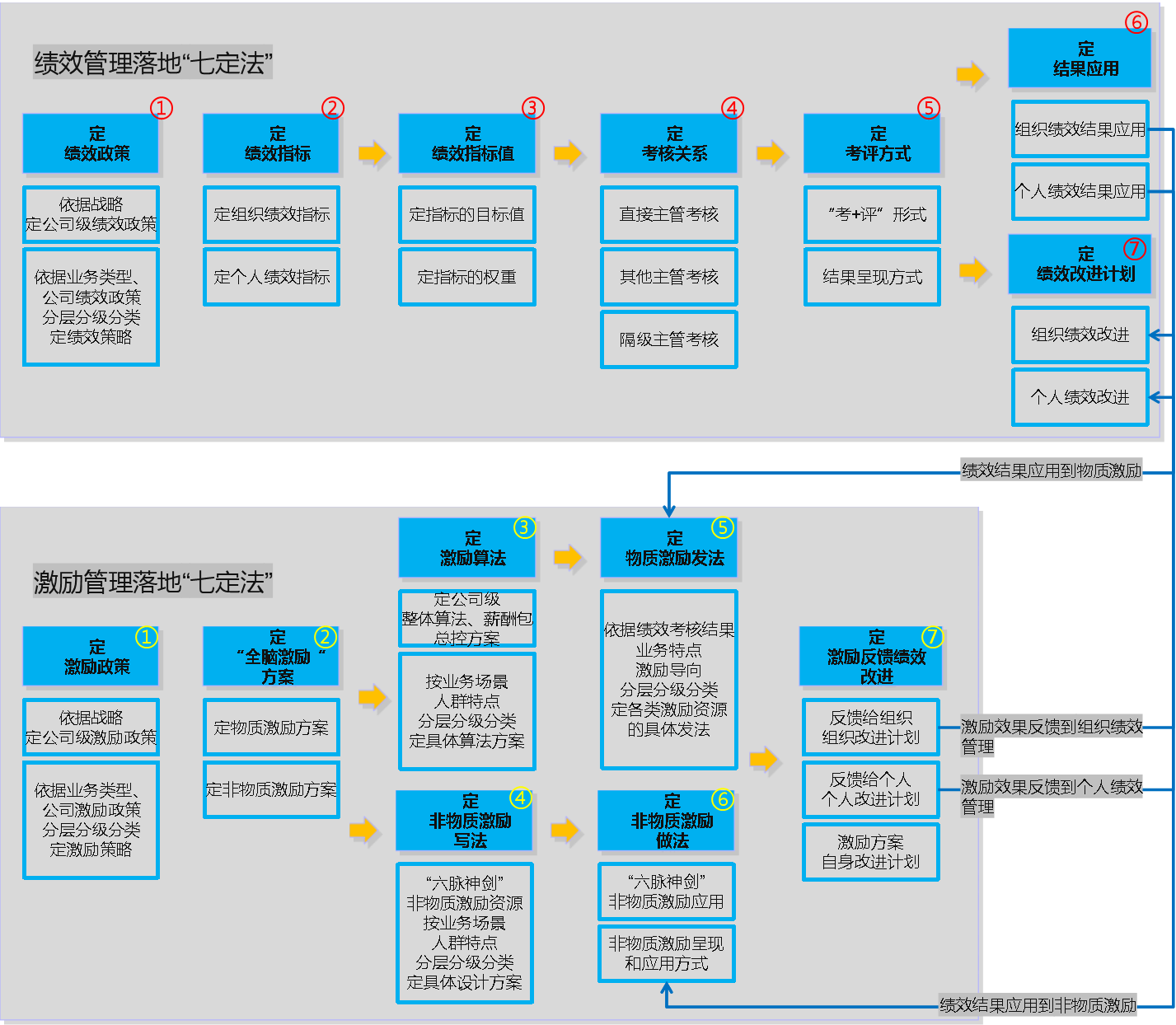 按照我们提出“道术法器”经营管理哲学以及众多咨询项目、变革项目的操作方法和经验,我们形成“科学绩效”、“全脑激励”在企业中的落实建设的关键步骤。