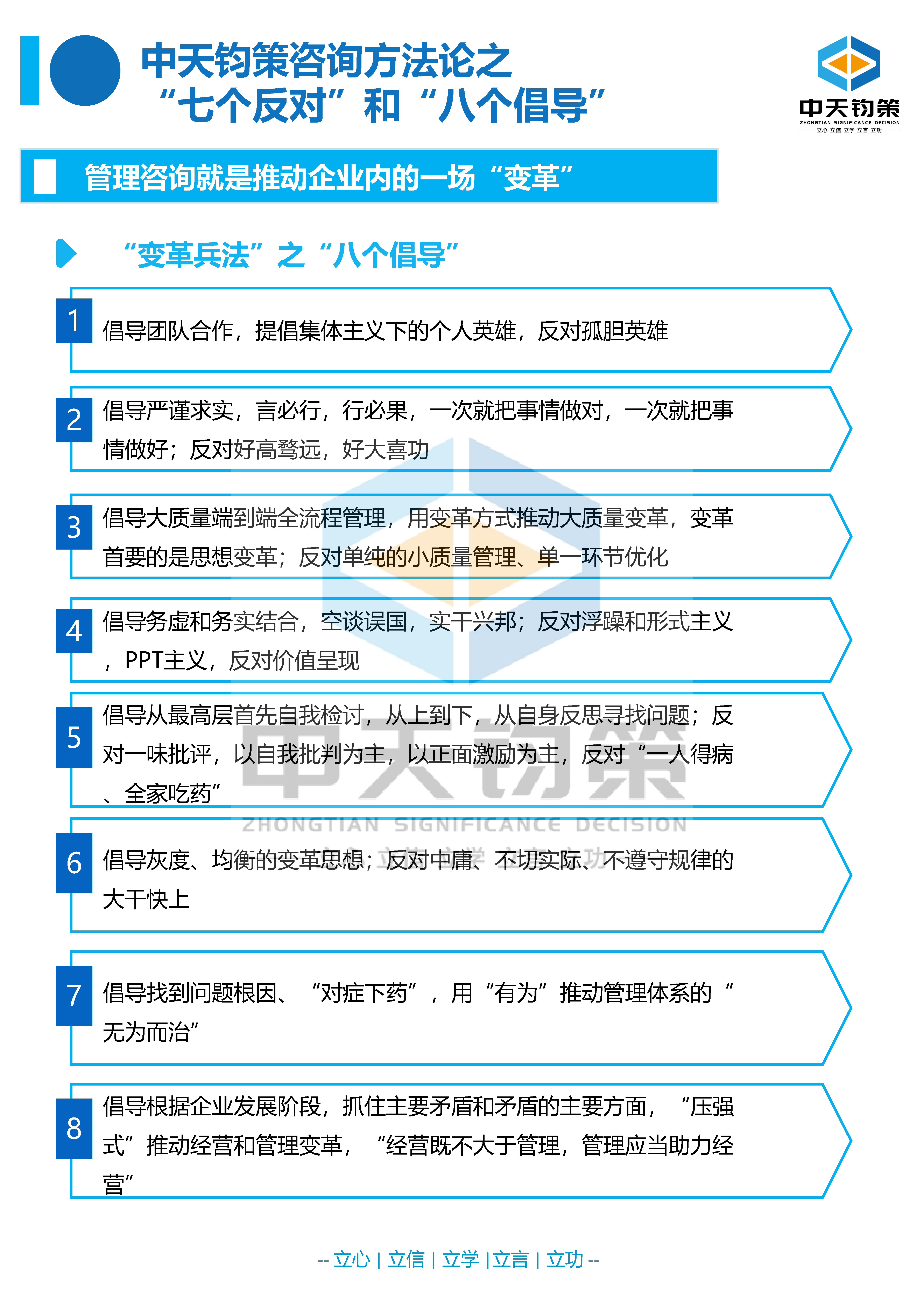 中天钧策从方案到落地方法论-之6 -“变革兵法”之“七个反对”和“八个倡导”