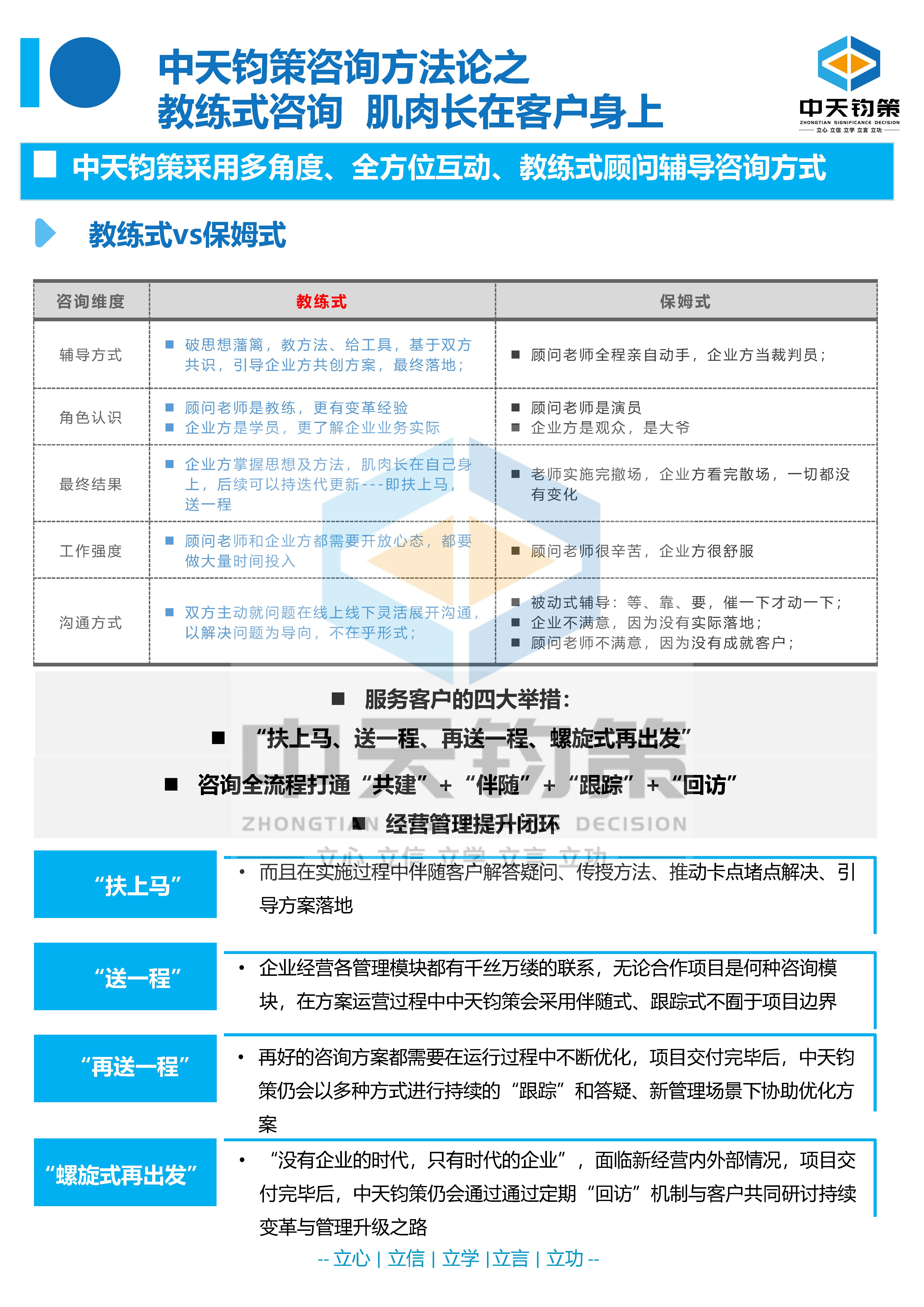 中天钧策采用多角度、全方位互动、教练式顾问辅导咨询方式